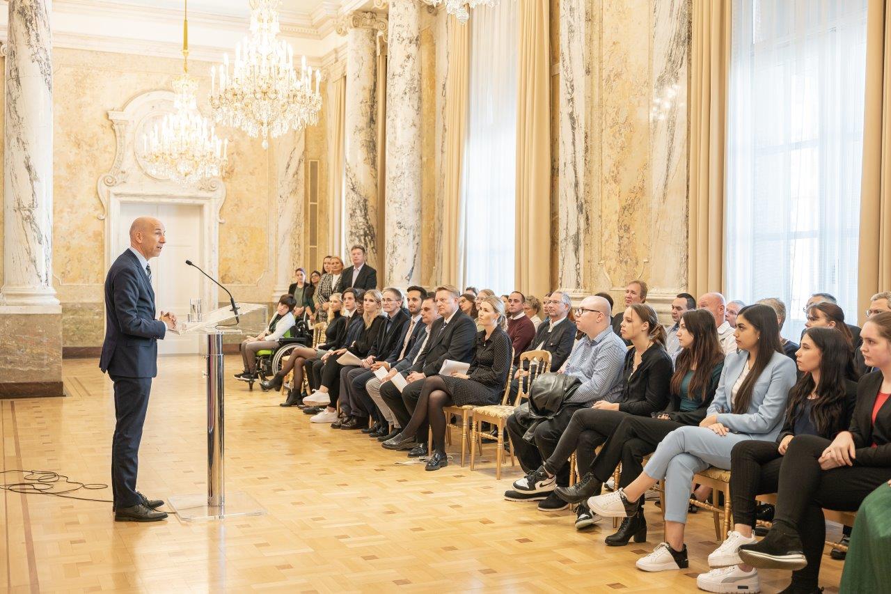 Mit den Aufnahmen in verlängerte Lehren wiederum (01.08.) setzte das BMAW auch ein ressortübergreifendes Signal, dass diese Ausbildungen auch im Bundesdienst angeboten und umgesetzt werden können. Die aufgenommenen Bewerber:innen wurden gemeinsam mit den anderen Lehrlingen des Ressorts im Rahmen eines Festaktes (Meet & Greet) am 06.10.2022 von der Ressortleitung begrüßt und willkommen geheißen: